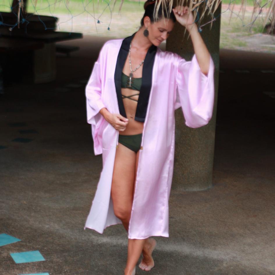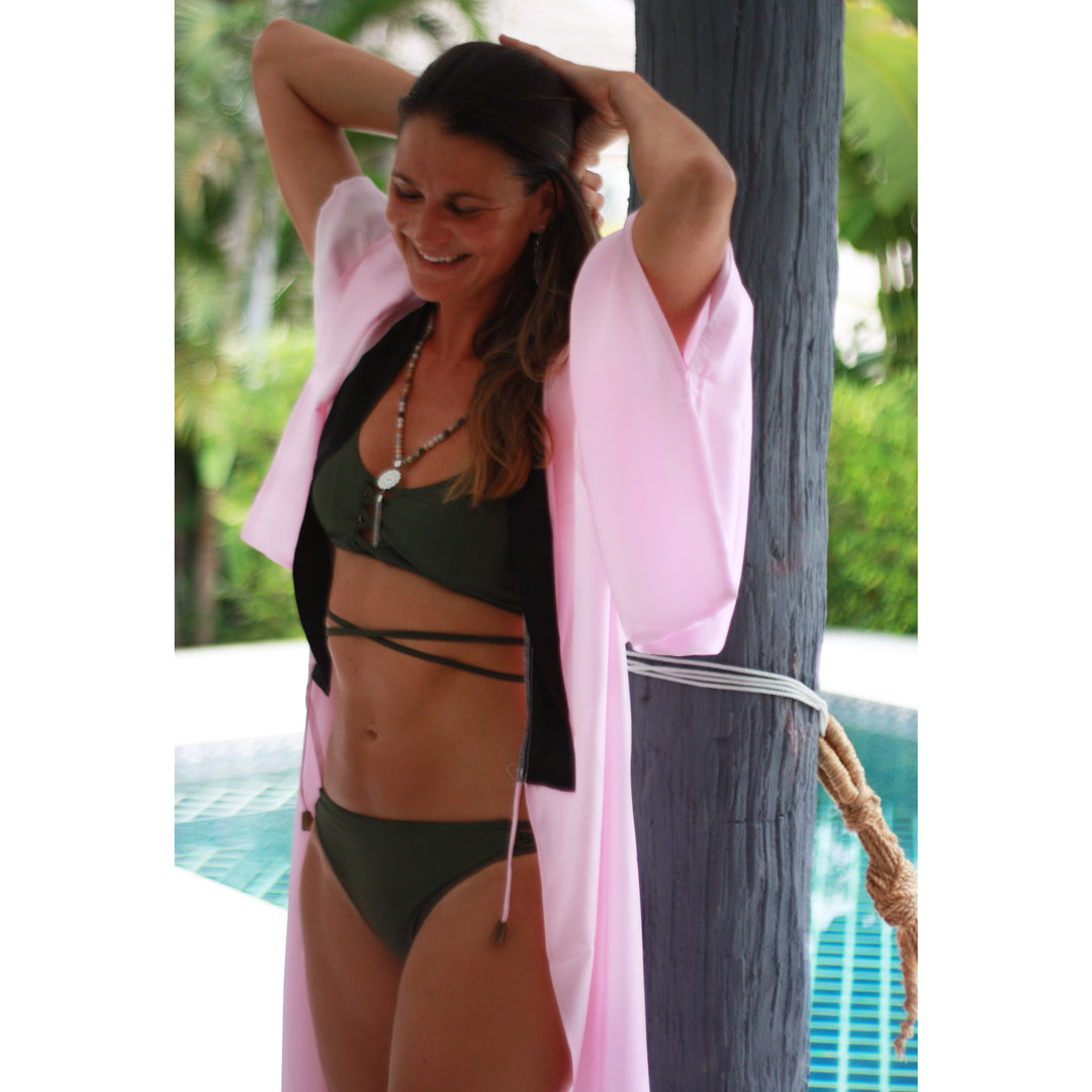 Svep in dig i den drömska elegansen hos vår Dreams silk yoga kimono, tillverkad i en delikat rosa nyans av premium, andningsbart eri-silk. Känt för sin miljövänliga produktion och oöverträffade mjukhet, erbjuder detta lyxiga tyg en lätt, hudvårdande känsla, vilket ger komfort och sofistikering till din dag.